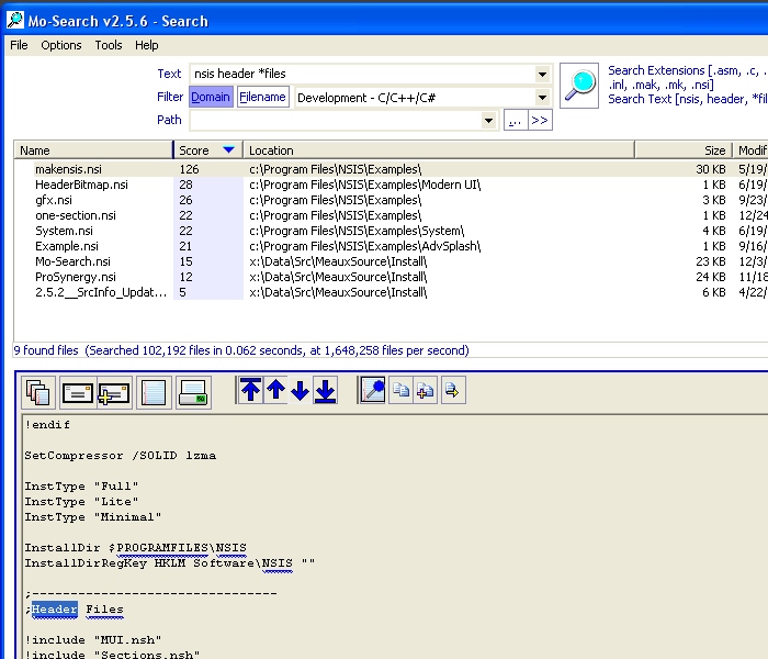 Mo-Search 3.1.1 Beta 1 helps you to rank and, then score your files by searching file contents or file paths. Some of the benefits of installing this freeware include; searching of network drives, integrated file viewer, and integrated EXIF QuickView adjacent to previewed images, among others.