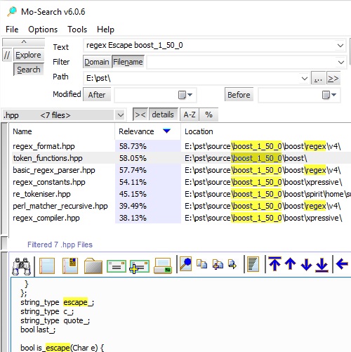 Some of the key tools of this app are: search results can be listed by relevance, by name, location (path), size, modified date, and further Filter by file type; The FileViewer provides quick navigation of matching files, as well as other tools: Email (file attachment or excerpt), Print, Word Counts, File Properties, File Index, and more; The AutoIndexer continually updates your index using industry standard iFilter, plus a host of indexers. A suite of other tools are also included: Duplicate files detection and cleanup, File type analysis, Whois internet lookup, and File index analysis. It comes with its uninstaller.